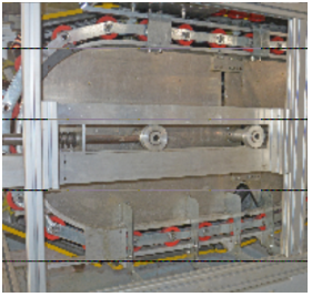 采用彈簧式張緊裝置,使梯級鏈條始終保持張緊狀態(tài),及時抵消在可控范圍內(nèi)因梯級伸長而造成梯級(踏板)等相關部件的偏離、晃蕩、沖撞與噪聲。本裝置全部采用鋁合金板材制作。