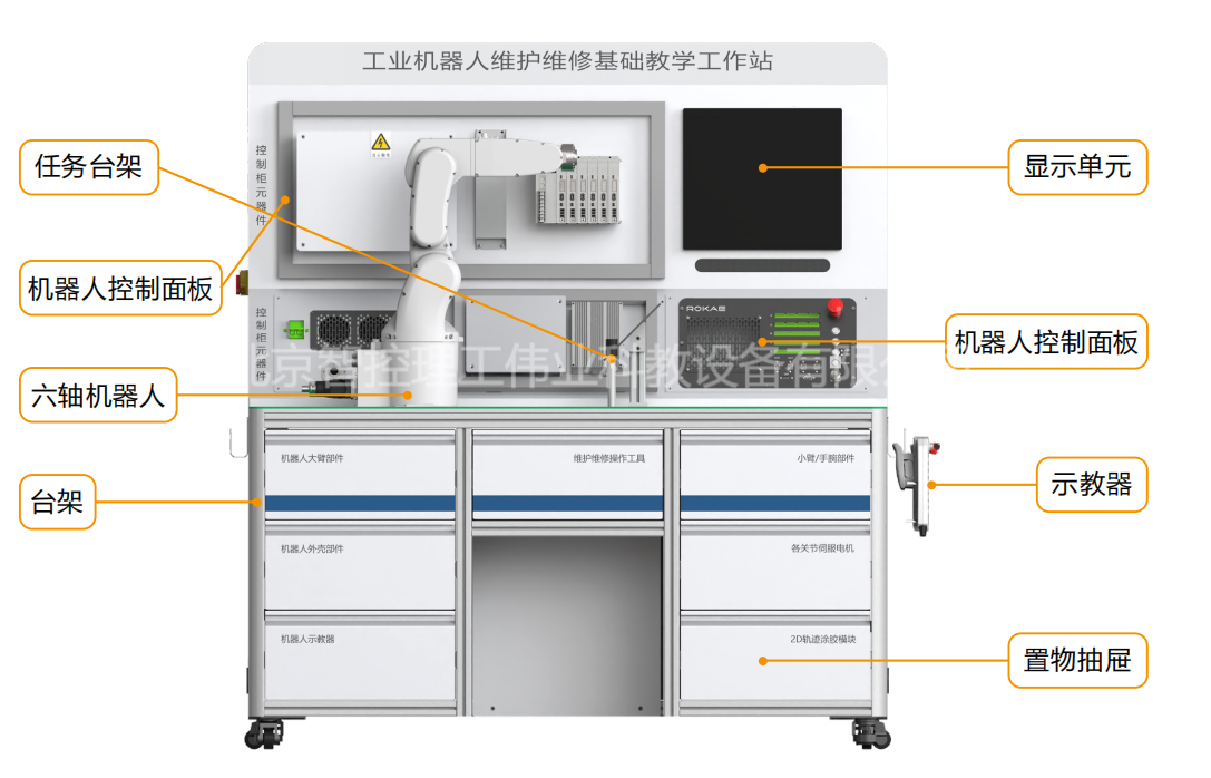 6) 機器人控制柜拆分裝在鈑金殼體上,可直觀、明了、全面觀察控制柜結構與原理。
