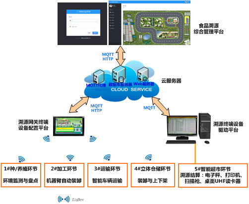 可實現牲畜入欄、盤點、出欄管理,屠宰入場、屠宰驗證、屠宰操作、屠宰出場管理,加工入場、分割驗證、分割操作、加工出場管理,倉儲批次、加工批次、出入庫管理,可通過掃描二維碼標簽,獲取該商品從生產、加工、倉儲、運輸、銷售等一系列操作記錄和環境監測信息。
