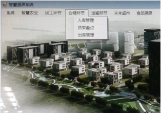 具有用戶登錄、系統設置、生產管理、加工管理、倉儲管理、運輸管理、銷售、溯源管理等功能菜單,可點擊查看下一級菜單詳情;