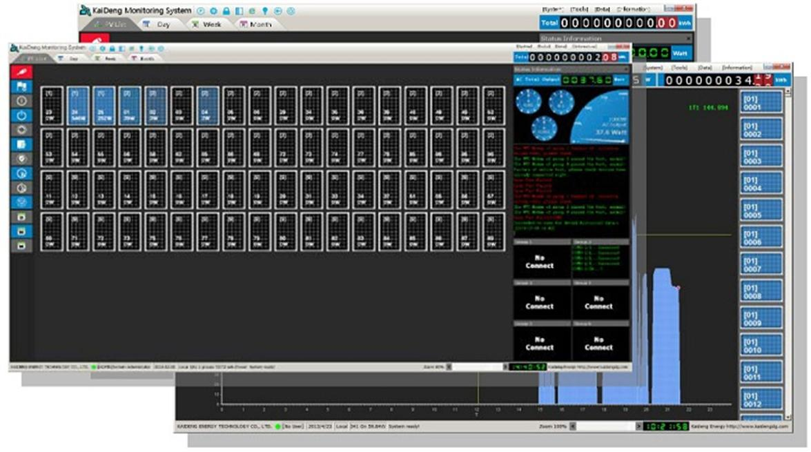 4-1、在上位軟件里查看單站監控項目:直流電壓VDC、直流電流A、輸入功率KW 交流電壓VDC、交流電流A、輸出功率KW,日發電量KWh、日運行時數hmin、總發電量KWh、總運行時數h,二氧化炭排放量查詢。